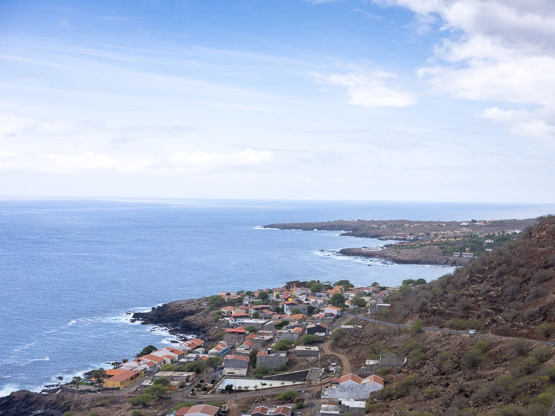 Daarna rijd je door het berggebied van Serra Malagueta, waar je korte wandelingen kunt maken met panoramische uitzichten. Uiteindelijk daal je af naar Tarrafal, een vissersdorp met een breed wit zandstrand, omzoomd door palmbomen. De sfeer is ontspannen, met vissersboten in de baai en kleine restaurants waar je verse vis kunt eten met uitzicht op zee.