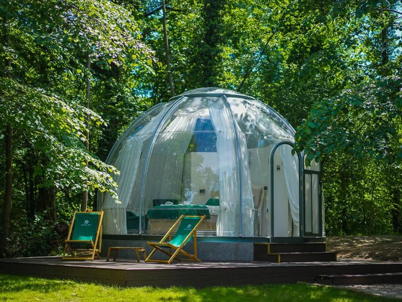 Wil je helemaal opgaan in de natuur, kies dan voor een upgrade naar een glamping-accommodatie aan de rivier. Je slaapt in een ruime safaritent met houten vloer en veranda, midden op een eilandje in de Una. Er is geen ontbijt inbegrepen, maar je kunt zelf iets regelen of in de buurt ontbijten. De sfeer is avontuurlijk en kleinschalig, met alleen het geruis van de rivier om je heen. Een fijne plek voor rustzoekers die graag buiten zijn.