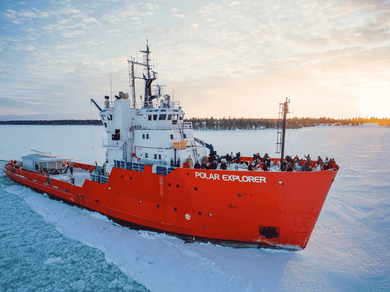 ✓ Op zee tijdens een ijsbreker boottocht of in een bevroren meer