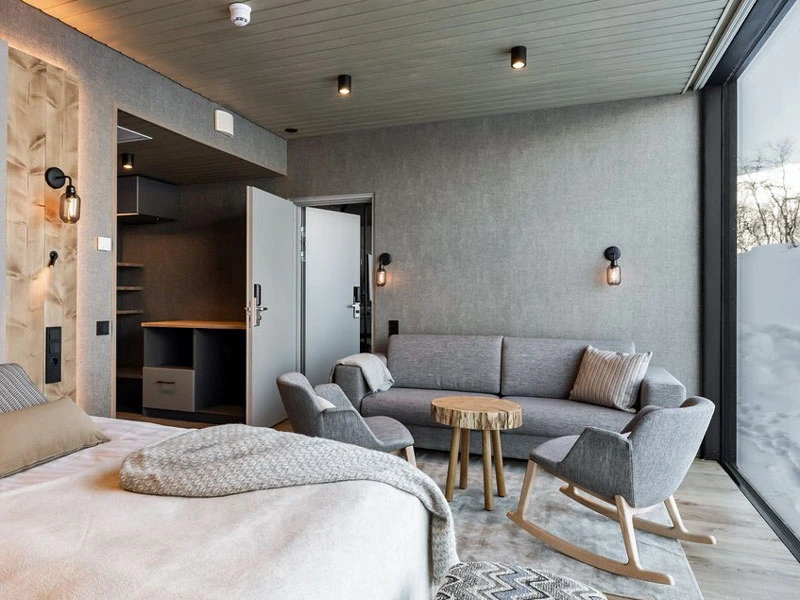 Vroeg in de ochtend, rond 07:00 uur, stap je op de bus en reis je verder naar Finland. De rit duurt ongeveer drie uur. Tussen Noorwegen en Finland is er overigens een tijdsverschil van één uur, dus de lokale aankomsttijd is ongeveer 11 uur. Hier verblijf je de komende dagen in een comfortabel hotel met een goed restaurant. In de wintermaanden is Kilpisjärvi een van de meest sneeuwzekere plekken in Finland. Vanuit het grote panoramische raam van je kamer kun je niet alleen genieten van het uitzicht op het met sneeuw bedekte landschap, maar met een beetje geluk ook het noorderlicht aan de hemel zien dansen.