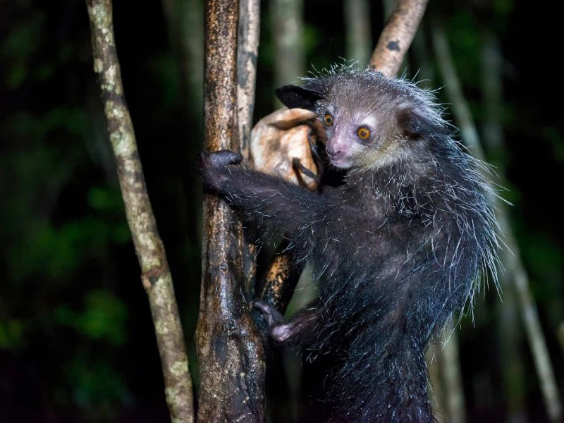 Vroeg in de avond stap je de boot in en vaar je naar een klein eiland reservaat waar de mysterieuze aye-aye leeft. Ook dit is een maki-soort, maar absoluut bijzonder. Het is niet de mooiste van zijn soort maar misschien wel de meest vindingrijke maki. De aye-aye slaapt overdag maar gaat zodra de avond valt op zoek naar eten. Met zijn vreemde lange vinger tikt hij op de boomschors. De grote oren van de aye-aye zorgen er voor dat hij de kleinste geluidsnuances hoort en zo zijn prooi op kan sporen.