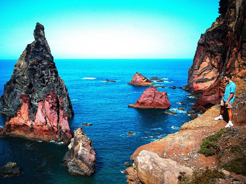 De rest van de dag hadden we tijd om het westelijke deel van het eiland, dichter bij de hotels, te verkennen. Hier ontdekten we de opmerkelijke rotsformaties in de vorm van enorme orgelpijpen bij Ana Ferreira en het afgelegen strand Praia do Zimbralinho. Je kunt vanaf een afstand bewonderen of helemaal afdalen naar beneden. Onze mini-roadtrip eindigde bij Ponta da Calheta, waar we genoten van een schilderachtig stukje strand omgeven door rotsen. Het lokale café serveerde bovendien heerlijke pastel de nata, wat echt een aanrader is.