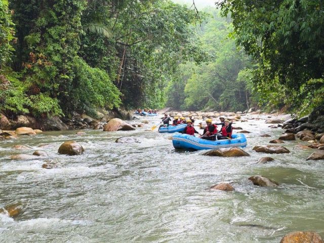 In de junglevallei bij Ipoh stap je in de raft voor een avontuurlijke tocht over de Kampar River. De rivier is speels en afwisselend: rustige stukken om even om je heen te kijken wisselen zich af met stroomversnellingen die voor de nodige adrenaline zorgen. Ondertussen peddel je door een groene jungleomgeving, met geluiden van de natuur langs de oevers.