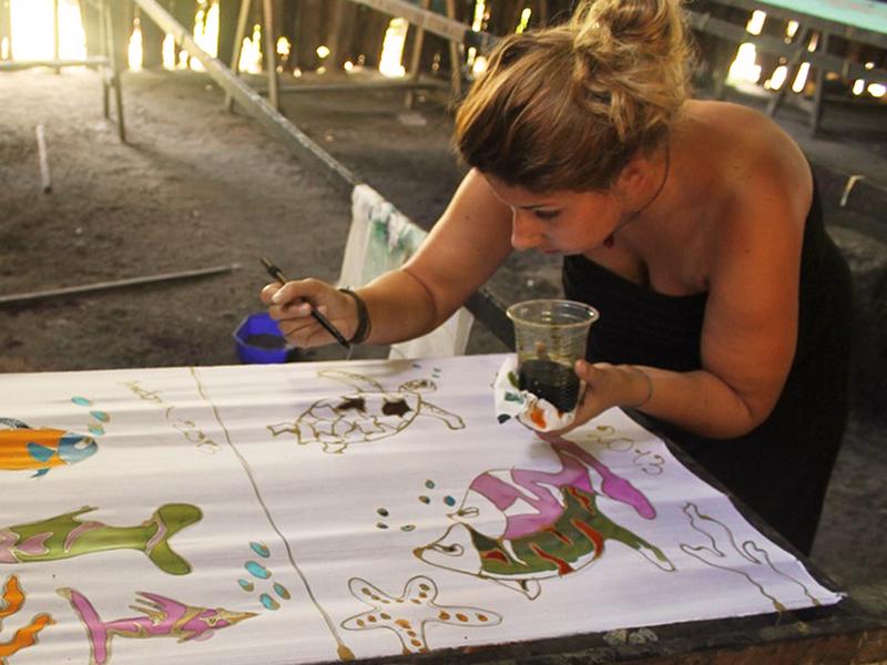 Na het ontbijt is het tijd voor je volgende kennismaking met het dagelijks leven op de kampung. Achter de huizen liggen veel kleine werkplaatsen verborgen. Zo heeft één van de buren een batikfabriekje in zijn schuur. Kleurrijke batikdoeken worden hier op traditionele wijze bewerkt. Hier kun je met hulp je eigen batikdoek beschilderen, op de ouderwetse manier met hete was. Zo leer je naast de geschiedenis van deze kleurrijke kunstvorm ook de specifieke techniek die erbij komt kijken.