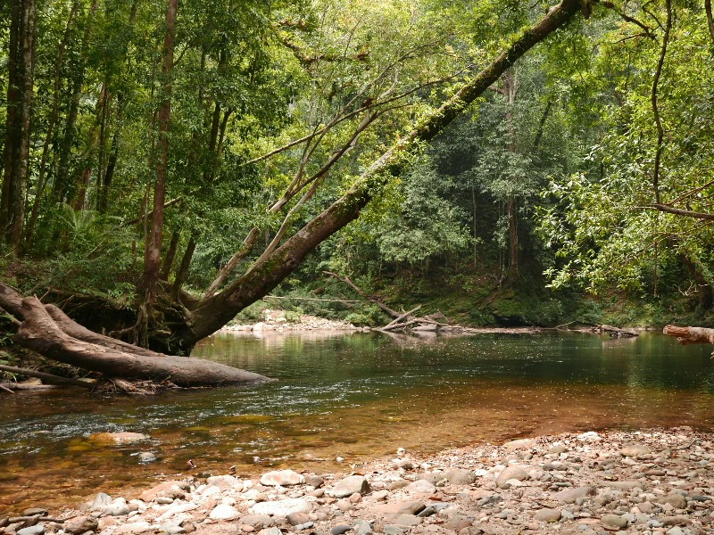 Daarna stap je in een 4WD en rijd je naar het beginpunt van de Gua Gajah Trail, ook wel bekend als de ‘Olifantengrot-route’. Deze 4 kilometer lange trail is een van de langste in het park. Je loopt het eerste deel te voet, speurend naar vogels, wildlife en dierensporen. Vervolgens brengt de 4WD je naar het startpunt van de Sungai Kelam Waterfall Trail. Deze route volg je te voet. Het is ongeveer een uurtje wandelen, waarbij je hier en daar een stroompje oversteekt tot je bij de waterval aankomt. Tijd voor een frisse duik in het koele water onderaan de waterval!