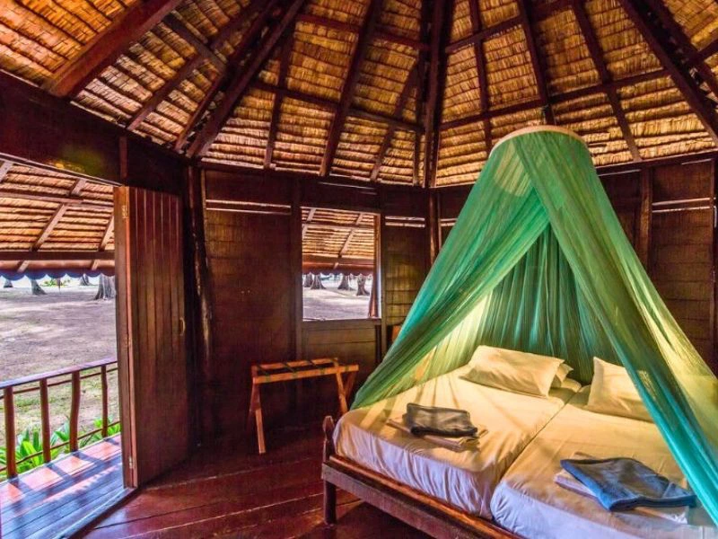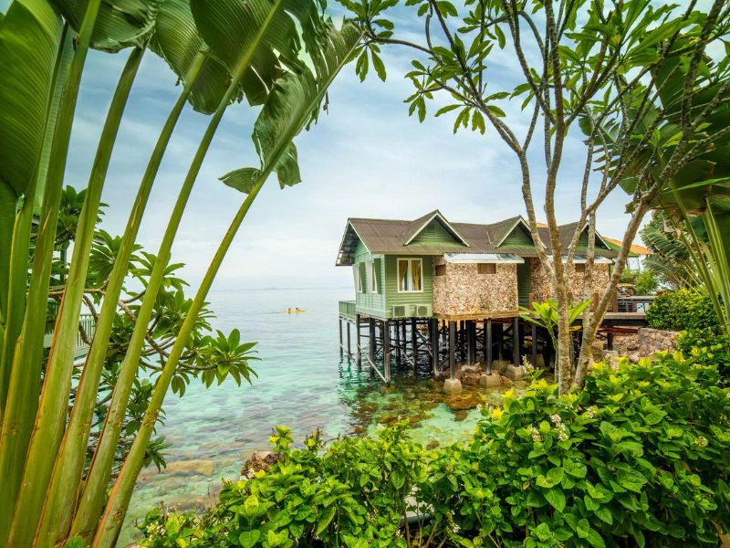 Pulau Sibu is een typisch tropisch eiland bedekt met jungle en omgeven door witte zandstranden en blauwe zee. Het is ongeveer 20 minuten per speedboot vanaf de haven. Je verblijft in een kleinschalig ecoresort in bungalows direct aan het strand. De houten chalets zijn eenvoudig, maar ruim en comfortabel en worden gekoeld door plafondventilatoren. Er is geen warm water in de kamers, maar dat is in de tropen ook niet nodig.