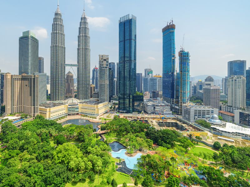 Je reist verder naar Kuala Lumpur. Vandaag duurt de busrit ongeveer 5 uur. De overgang van natuur naar stad is groot: van groene heuvels naar een moderne skyline. Na aankomst kun je alvast een eerste indruk krijgen van de stad, bijvoorbeeld bij de Petronas Twin Towers.