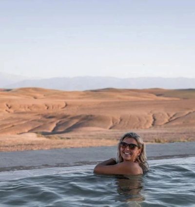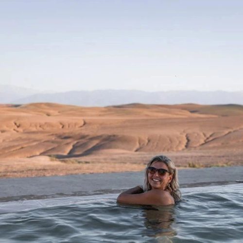 Je verlaat de kustplaats Essaouira en je reist verder naar de unieke Agafay-woestijn. Bij aankomst in het comfortabele woestijnkamp is het tijd voor ontspanning. Neem een verkoelende duik in het zwembad en bewonder het uitgestrekte woestijnlandschap, terwijl er een zachte wind langs waait.