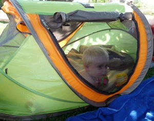 Ideaal: een lichtgewicht slaaptentje. Dan slaapt je kind elke nacht vertrouwd en insectenvrij in hetzelfde bed. Bovendien zijn babybedjes niet altijd beschikbaar in de accommodaties. Je kunt het tentje ook gebruiken op het strand voor dutjes en als speelplek.