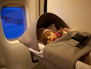 Kindjes tot 2 jaar krijgen geen eigen stoel en zitten op schoot met een speciale gordel die aan de normale riem wordt vastgemaakt. Voor baby’s kunnen we een bassinet aanvragen (o.v.v. beschikbaarheid); een soort wiegje dat aan de wand wordt bevestigd. Airlines hanteren hier een maximum voor; meestal ca. 10 kg en/of 10 maanden of soms maar tot 6 maanden. Tijdens het stijgen, dalen en bij turbulentie neem je ze altijd op schoot.