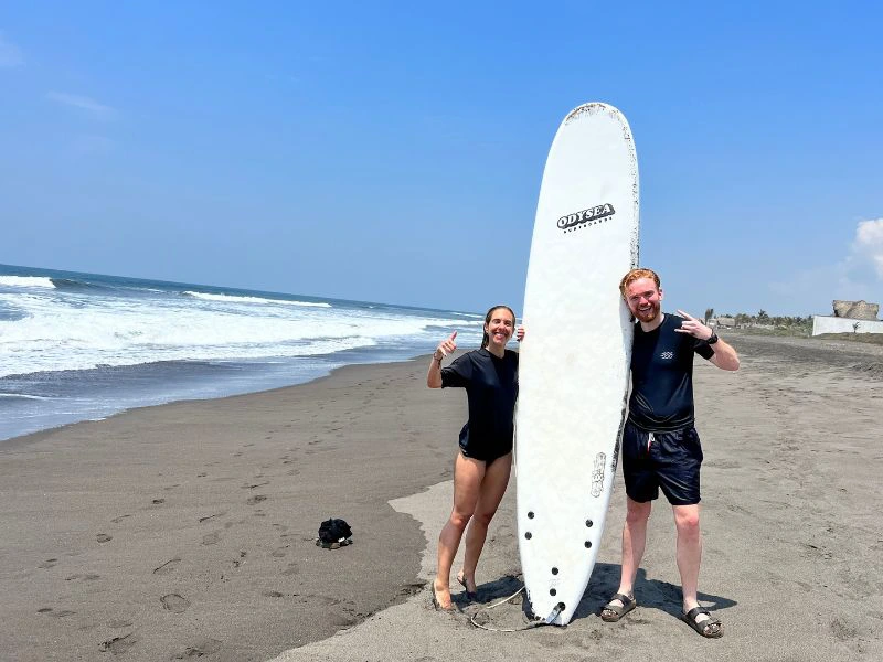 Na het ontbijtje in Antigua stap je in de shuttle voor een relaxte rit van ongeveer drie uur naar El Paredon. Onderweg zie je het landschap veranderen: van kleurrijke koloniale straatjes naar uitgestrekte groene velden en uiteindelijk de lange zandstranden van de Pacifische kust. Bij aankomst voel je meteen de relaxte sfeer die deze surfspot zo populair maakt. Hier geen massa’s toeristen, maar een fijne mix van jonge reizigers, locals en surfers die allemaal voor hetzelfde komen: het goede leven aan zee. Je vindt hier gezelligheid, leuke restaurantjes, barretjes en surfscholen waar je makkelijk een plank kunt huren of een les kunt volgen.
