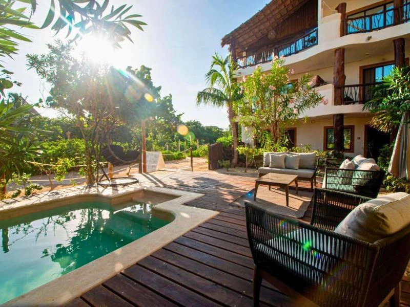 Wil je graag wat comfortabeler verblijven dan kun je op Isla Holbox ook voor onze comfort optie kiezen. Je verblijf dan in een iets exclusiever resort direct aan het strand. Ook hier kun je lekker in het zwembad ploffen als je de zee zat bent.