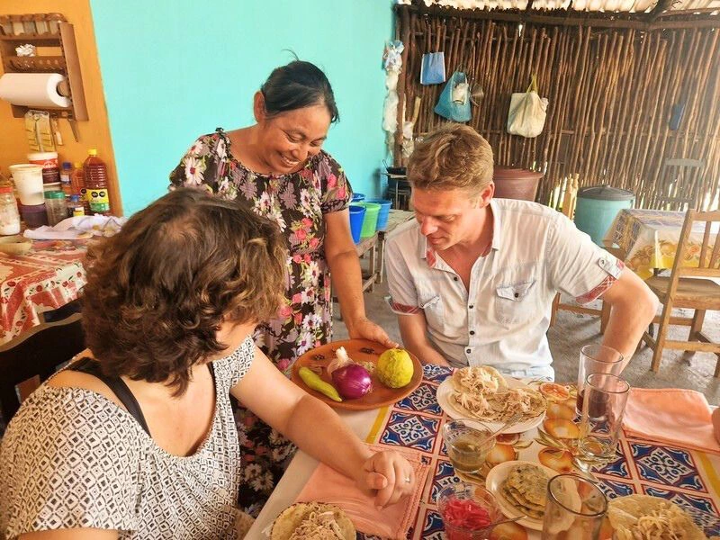 Wil je echt ervaren hoe het dagelijkse leven in Campeche eruitziet? Tijdens deze bijzondere ervaring word je opgehaald bij een centrale ontmoetingsplek en samen wandel je naar het huis van een lokale familie. Daar ga je samen koken en schuif je direct aan voor een zelfbereide Mexicaanse maaltijd. Zo proef je niet alleen de smaken van Mexico, maar leer je ook de gewoontes en verhalen van de mensen kennen. Je hoeft geen Spaans te spreken, een beetje Engels is genoeg om elkaar te begrijpen.