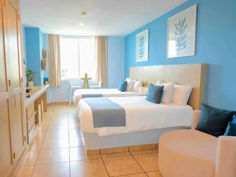 Je slaapt in een comfortabel eilandresort aan zee. Op loopafstand vind je restaurants. Loop je iets verder, dan kom je bij een van de mooiste stranden van Isla Mujeres, met wit en breed zand. In tegenstelling tot andere delen van het eiland is de zee hier rustig en kun je goed zwemmen. Het hotel is groter en minder kleinschalig, maar de comfortabel kamers, de persoonlijke service en ligging aan zee maakt dat ruimschoots goed.