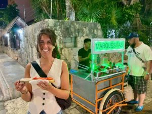 Met een lokale bewoner van Playa del Carmen ontdek je het échte Playa. Zo ontdek je lokale tentjes waar je zelf niet snel komt. Kom met een lege maag. Je start met een proeverij van licuados, drankjes met allerlei soorten fruit, zoals maracuja, guanabana, hibiscus en alcoholvrije pina colada. We lopen het centrum uit en komen bij een lokale tent waar we de beste birria proeven, slow cooked suddervlees. Ook proeven we een gerechtje uit een typisch Mexicaanse molcajete, een aardewerken vijzel. Op het plein eet je elote, een maïskolf met kaas en saus, en als toetje een knapperige marquesita met zoete vulling. Je gids deelt zijn liefde voor eten en zit gezellig mee te smullen. Je sluit de avond af met een tequila-proeverij bij een lokale ondernemer. Zo leer je niet alleen de smaken, maar ook de verhalen achter de Mexicaanse keuken kennen. Hier ga je de rest van de reis nog plezier van beleven.