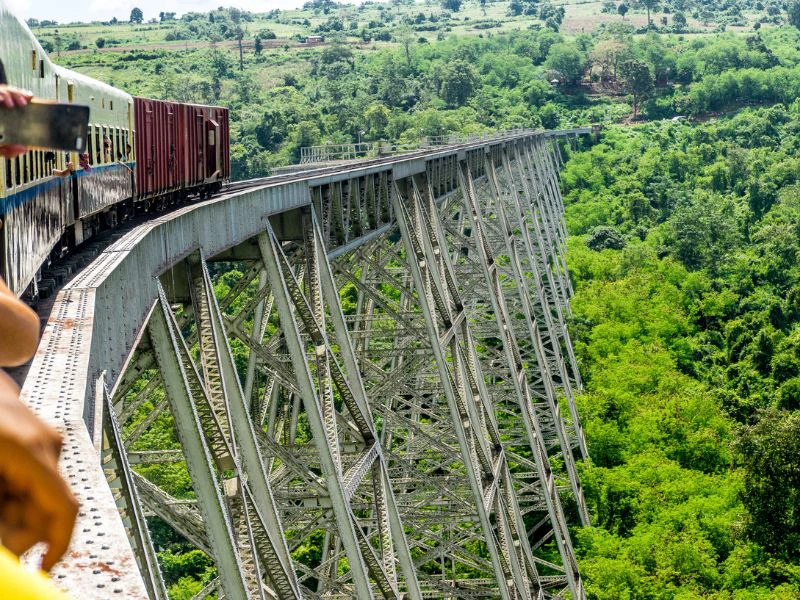 In Nederland mogen we graag even zeuren over onze spoorwegen, maar in Myanmar kun je gerust rekening houden met nog iets meer vertraging. Vooral op de lange afstanden vinden wij treinen niet echt een optie, omdat ze erg traag zijn en vrij oncomfortabel. Zo doe je over een rit van Yangon naar Mandalay ongeveer 20 uur. Wij vinden het leuker om een korte treinrit te doen, waar je echt iets van de omgeving kunt zien of even ervaart hoe de lokale bevolking reist. Zo kun je tijdens Rijstbus en Shan noedels dwars door de bergen en over kloven reizen en in onze Onbekend Zuid-Birma bouwsteen een stukje met de lokale trein naar Yangon meereizen.