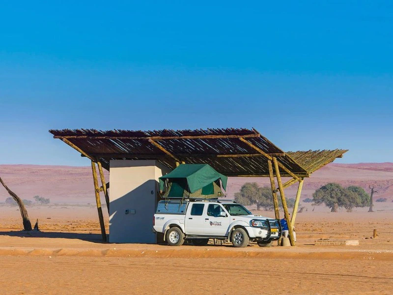 De bouwsteen staat beschreven met verblijf in een lodge. Wil je graag extra avontuurlijk op reis gaan, dan kun je ook gaan kamperen. Dé manier om avontuurlijk en individueel door Namibië te reizen: een stevige 4×4 auto, een tent op het dak en volledige kampeeruitrusting. Je hebt alle ‘faciliteiten’ aan boord. Wij regelen een campsite bij de Sossusvlei. ’s Avonds klap je de daktent op en roer je onder de sterrenhemel in je pannetje.