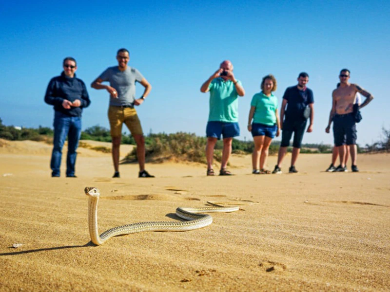 Samen met een ervaren gids ga je deze ochtend de woestijn in en op zoek naar de ‘Little 5’. In die enorme zandvlakte lijkt er op het eerste gezicht geen leven te zijn. Maar al snel zal je sporen ontdekken en wijst de gids je op de vele reptielen en insecten die in de woestijn leven en zich perfect hebben weten aan te passen aan de omstandigheden.