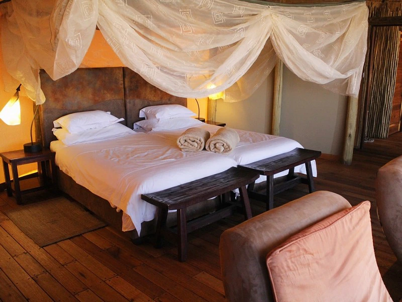Je slaapt vannacht in een van de grotere, maar sfeervolle staatskampen in het park zelf. De meeste hebben een eigen waterplaats waar je tot in de late uurtjes kunt blijven zitten. Met een kop thee of iets sterkers kijk je hoe neushoorns of jakhalzen zich komen laven, terwijl boven je een fonkelende sterrenhemel verschijnt.