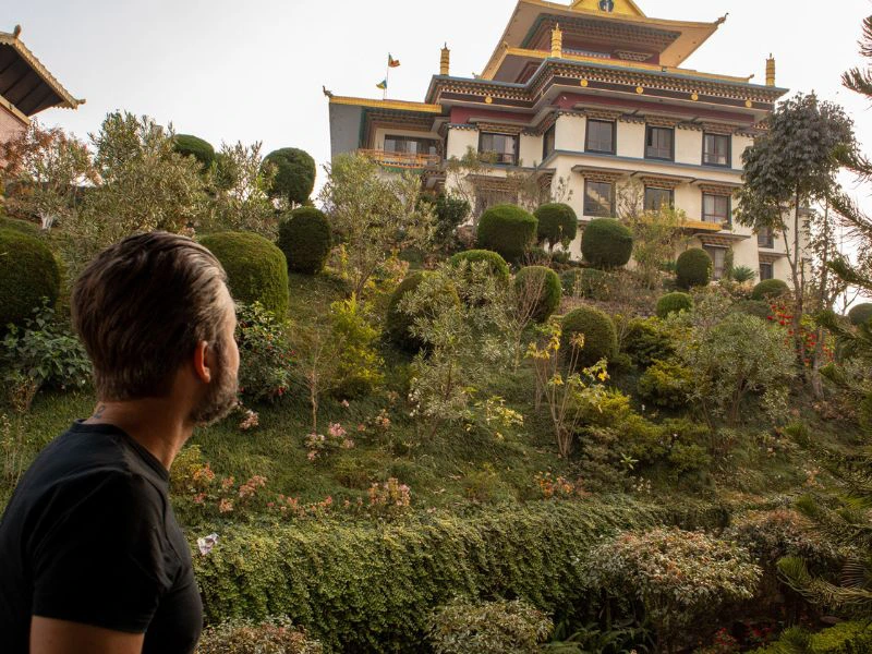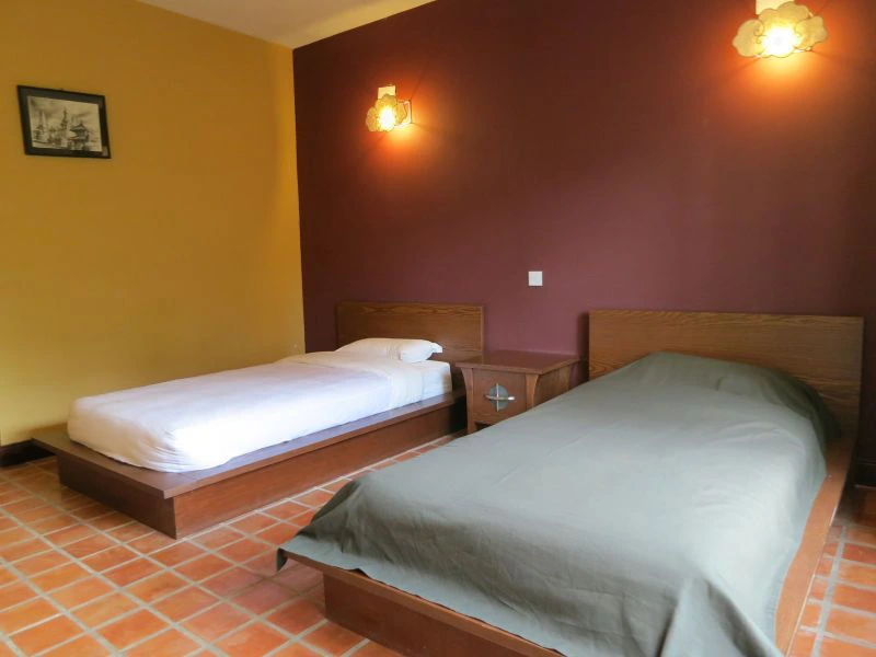 Je slaapt een nacht in het comfortabele gastenverblijf van het klooster. De kamers hebben allen een eigen badkamer en uitzicht op het prachtige klooster gebouw of de omringende heuvels. In het gastenverblijf is ook de eetzaal waar je heerlijk en goed kunt eten. De inkomsten van het gastenverblijf gaan naar onderwijs voor jonge monniken.
