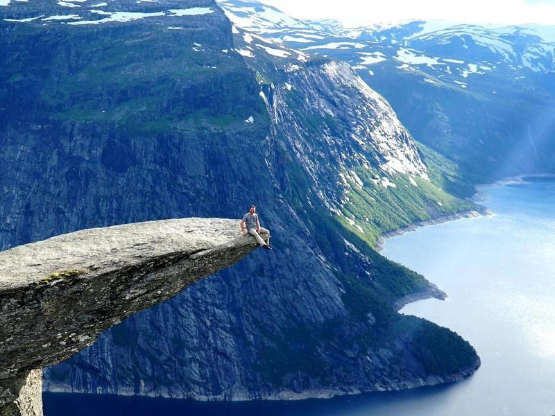 Voor vele reizigers is het een bucketlist-ervaring de hike naar Trolltunga. Wij snappen dit heel goed. Als je bij Riksja boekt, regelen we deze expeditie graag voor je. De hike naar de fotogenieke rotsformaties is vrij pittig en kan het druk zijn, dus raden we je aan om deze wandeling over meerdere dagen te plannen om de drukte te vermijden en de natuur voor jezelf te hebben. Onderweg wandel je door groene dalen, maar hoe hoger je komt, hoe ruiger het landschap wordt en er ligt op sommige stukken zelfs het hele jaar door sneeuw. Vergeet dan ook niet om warme kleding aan te doen. Na de eerste dag wandelen, kom je aan bij de expeditietent waar je vannacht zult slapen. De volgende dag hike je binnen driekwartier naar het bekende uitzichtpunt waar je genoeg tijd hebt om het mooiste plaatje te schieten.