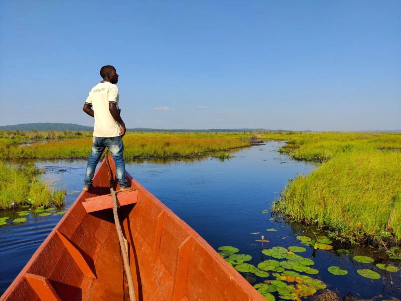 Vroeg uit de veren voor een bijzondere vogelspot-ervaring. In het Mabamba-moeras ga je per boot op zoek naar de zeldzame schoenbekooievaar. Deze indrukwekkende vogel is met zijn logge postuur en ‘prehistorische’ kop een favoriet onder vogelliefhebbers. Terwijl je rustig door het riet vaart, vertelt de gids over het moeras en de dieren die er leven. Met een beetje geluk spot je deze bijzondere vogel van dichtbij.