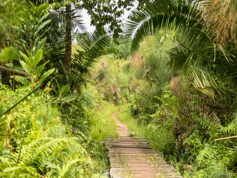 Een stuk rustiger, maar minstens zo bijzonder: een wandeling door het Bigodi-moerasgebied. Met een lokale gids loop je door een beschermd natuurgebied dat bekendstaat om z’n biodiversiteit. Je ziet exotische vogels, vlinders, apen en met een beetje geluk misschien zelfs nog een chimpansee. De gids vertelt je van alles over de planten en dieren die je tegenkomt. Een ontspannen, leerzame tocht door een van de verborgen pareltjes van Kibale.