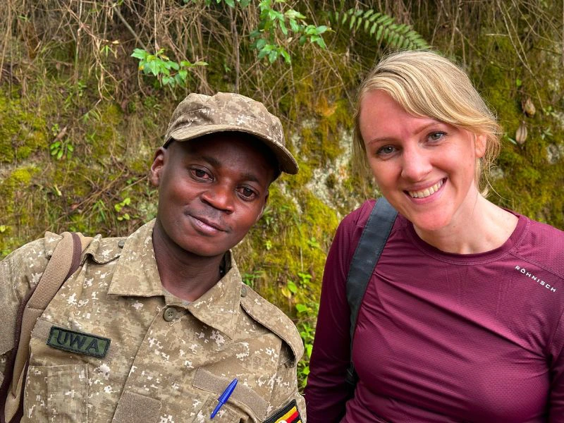 “Wij volgden onze gids op de voet. Er kwam regen aan en die wilden we voor zijn. Of we het tempo wat wilden ophogen, ja zeiden we in koor! We hadden er alles voor over om nog een glimp van ze op te vangen. We renden bijna door het bos, tot daar opeens een stel chimpansees naast ons zat te vlooien. Even verderop zagen we een kleintje spelen in het water en de rest van de familie spelend in de bomen. We bewegen met ze mee. Dan vallen de eerste druppels, tijd om terug te gaan. Maar dan komt er een chimpansee dansen in de regen en nog een, wauw! Een onvergetelijke ervaring.”