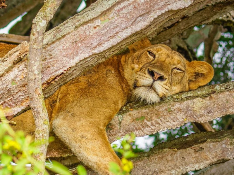 In Queen Elizabeth National Park beleef je een safari die je nooit gaat vergeten! De beroemde boom klimmende leeuwen kun je hier zien. Deze unieke dieren rusten in de vijgenbomen en met een beetje geluk spot je zelfs een hele familie tussen de takken. Wil je ze van dichtbij bewonderen? Stap dan onder begeleiding van een gids in de jeep en ga off-road, dwars door het leefgebied van de leeuwen. Onderweg heb je ook kans om olifanten, luipaarden en buffels tegen te komen. En vergeet de vogels niet: met meer dan 600 verschillende soorten is dit park ook een paradijs voor vogelliefhebbers.