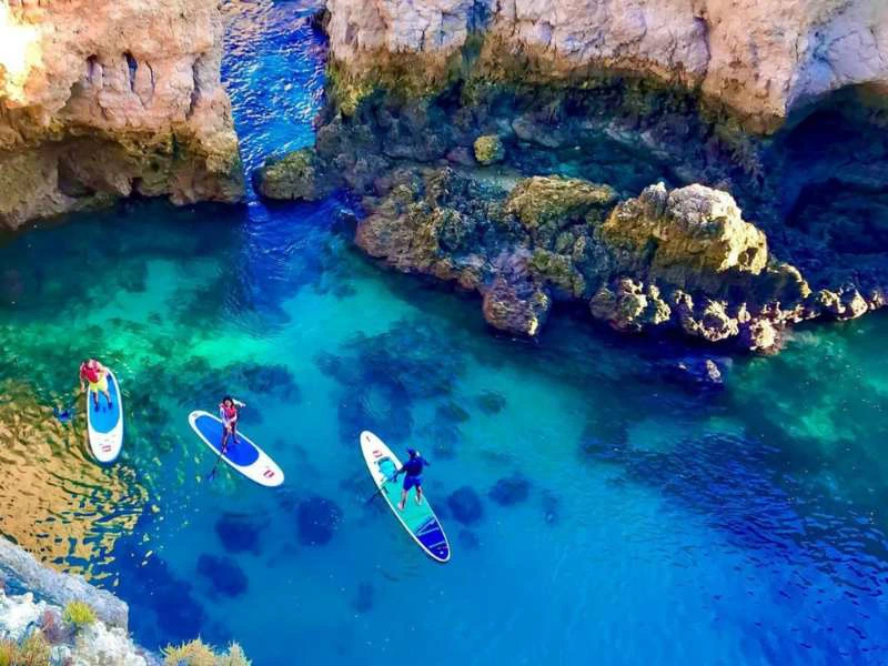 De kustlijn van de Algarve staat bekend om haar ruige goudgele kliffen. De baaitjes weten veel mensen wel te vinden, maar volgens ons is er een veel leukere manier om de kliffenkust te verkennen. Pak de SUP erbij! We kiezen er juist voor om deze excursie vroeg op de dag te organiseren omdat het dan rustiger is op het water én in de grotten. Zo heb je de omgeving bijna voor jezelf en kunnen er heel wat gave foto’s gemaakt worden.