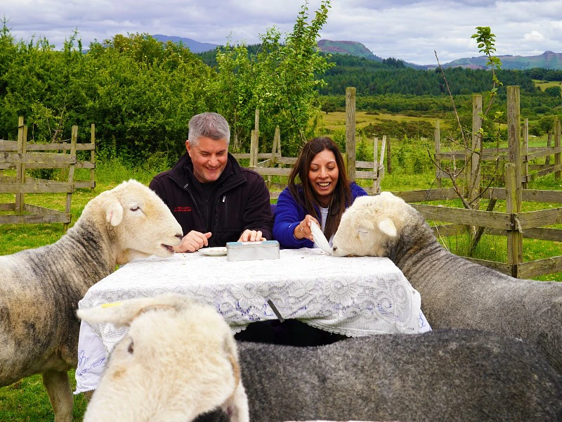 Vandaag beleef je iets heel bijzonders: een high tea tussen de schapen! Een typisch Britse high tea is natuurlijk onmisbaar tijdens een reis door Schotland, maar deze heeft een speelse twist. Je bent te gast bij Beccy en haar man die op een mooie plek in het nationale park The Trossachs wonen. Terwijl je geniet van zelfgemaakte zoetigheden en lekkernijen, kunnen er zomaar wat nieuwsgierige schapen of een paar kippen opduiken, klaar om mee te snoepen van jouw high tea. Naast het smullen is er genoeg tijd om met de schapen te knuffelen. Deze ervaring in een bijzondere setting is perfect om even helemaal tot rust te komen.