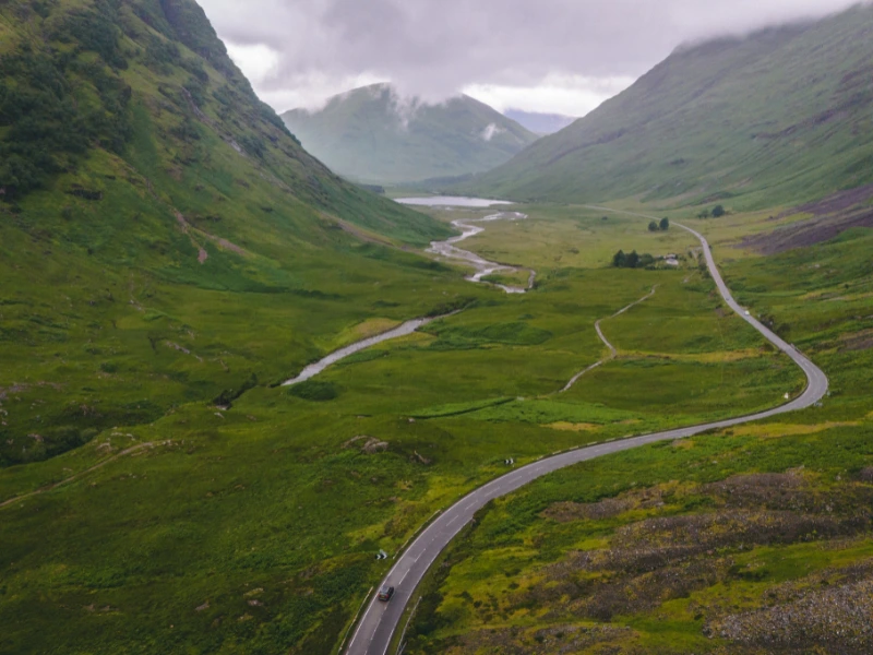 Terwijl je over de kronkelende wegen van Glen Etive rijdt, lijkt het alsof je zo een filmscène binnenstapt. Deze mooie vallei in de Schotse Highlands werd beroemd dankzij de James Bond-film Skyfall. In de film zie je James Bond hier stoppen om het spectaculaire landschap in zich op te nemen. Glen Etive is niet alleen een favoriet onder Bond-fans, maar ook een paradijs voor fotografen en natuurliefhebbers. De weg door de vallei behoort tot de mooiste autoroutes van Schotland. Voor de avontuurlijke reiziger is er de mogelijkheid om Ben Nevis, de hoogste berg van het Verenigd Koninkrijk, te beklimmen. Heb je hier geen zin? De vallei aan de voet van de berg biedt genoeg andere leuke wandelroutes, langs watervallen, rivieren en ruige kliffen. Het is de perfecte plek voor een rustige wandeling en om volop van de natuur te genieten.