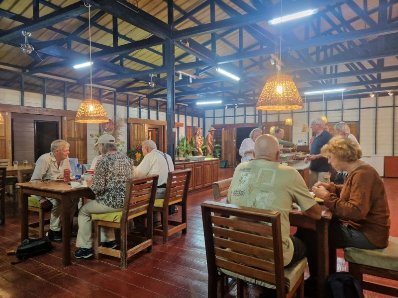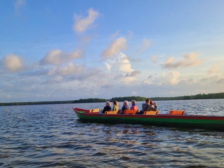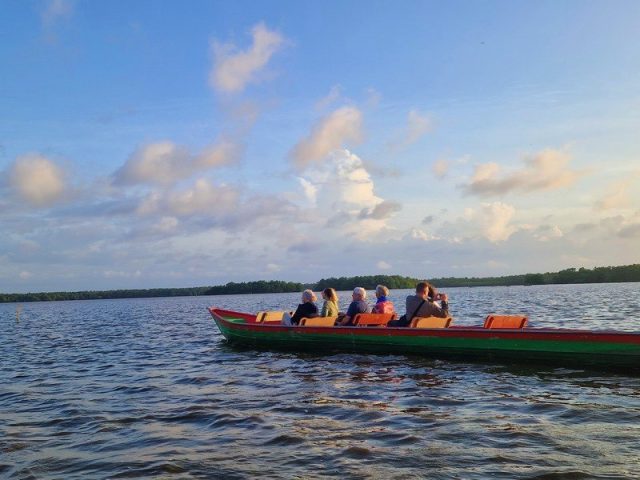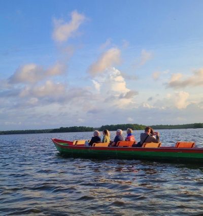 Bij aankomst in de lodge staat de lunch voor je klaar en krijg je uitleg over het programma van de komende dagen. Je kunt gebruikmaken van een kano en er is onbeperkt thee, koffie, water en limonade. Ook worden er versbereide Surinaamse maaltijden geserveerd. Na de lunch ga je direct het water op voor een eerste vogelspottocht. Bigi Pan is de grootste lagune van Suriname en een belangrijk voedselgebied voor honderdduizenden vogels. Je ziet hier onder andere flamingo’s, rode ibissen en veel andere vogelsoorten. Hoewel flamingo’s trekvogels zijn en hun aanwezigheid afhangt van waterstanden en voedsel, zijn er het hele jaar door volop vogels te zien, zoals reigers, visarenden, fregatvogels en aalscholvers. Na het diner ga je nog een keer het water op, dit keer in het donker, op zoek naar kaaimannen en andere nachtdieren. Een indrukwekkende afsluiting van je eerste dag bij Bigi Pan.