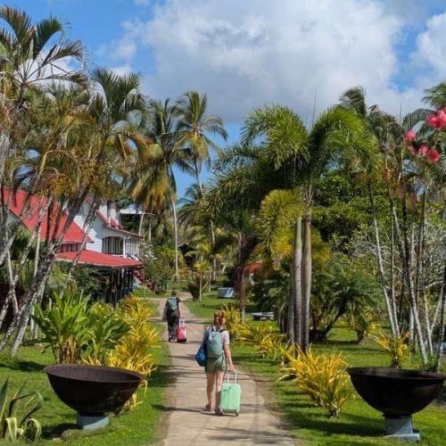 Per boot steek je de Commewijnerivier over naar Frederiksdorp, een voormalige koffie- en cacaoplantage aan de overkant van het water. In de omgeving zie je nog sporen van het plantageverleden en hoor je meer over de geschiedenis van de mensen die hier onder zware omstandigheden hebben gewerkt en geleefd. De oude landhuizen zijn inmiddels omgebouwd tot comfortabele kamers en verspreid over het park staan verschillende lodges. Na aankomst stap je samen met een gids op de fiets voor een excursie door de omgeving. Daarna is er ruimte om te ontspannen, bijvoorbeeld bij het zwembad. Op het park vind je ook een restaurant en bar, een fijne plek om de dag rustig af te sluiten