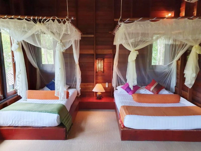 Wil je nou dat échte ‘hutje op palen’-gevoel? Overnacht dan in ons upgrade resort. Je overnacht in een luxe bungalow, van alle gemakken voorzien, dichtbij of zelfs aan het strand. Het strand ligt aan de oostkant van Koh Tao; de zonsopkomst is hier fabuleus. Net zoals de onderwaterwereld. Schrik niet wanneer je een zeeschildpad weg ziet zwemmen of zelfs een rifhaai. Wij plannen dit resort graag voor je in; onderaan deze pagina vind je de meerprijs én de mogelijkheid om het resort toe te voegen aan je reis.
