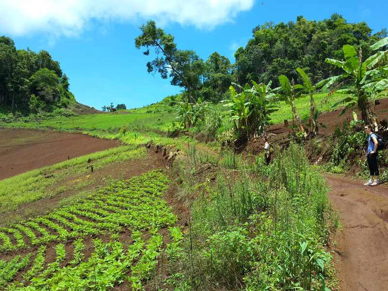 Daarna trek je met je gids het gebergte in, over zandpaden die je door rijstvelden en bamboebossen leiden. Terwijl de ochtendmist langzaam optrekt, ontvouwen de valleien zich voor je ogen. De tocht is spectaculair, maar soms ook pittig—vooral als de paden na regenval modderig en glad zijn. Zorg dus voor stevige schoenen met goed profiel, want je moet af en toe flink klimmen.