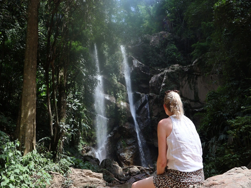 Mo Paeng Waterfall is een stuk breder en minder hoog, maar juist dat maakt ‘m zo leuk. De gladde rotsen vormen hier namelijk een natuurlijke glijbaan waar je vanaf kunt glijden! Hoe leuk is dat?!