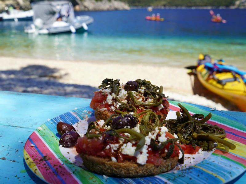 Als je de volgende ochtend je tent uitkomt kun je meteen een verfrissende duik nemen om wakker te worden. Na een traditioneel Grieks ontbijt is het weer tijd om het kamp af te breken en in de kajak te stappen. Vandaag leg je ongeveer 13 km af. Er staan nog twee andere eilanden en een heerlijke Mediterraanse picknick lunch op het programma. In de loop van de middag ben je weer terug op Lefkas, zit je mini-expeditie er op en ben je weer een avontuur rijker.