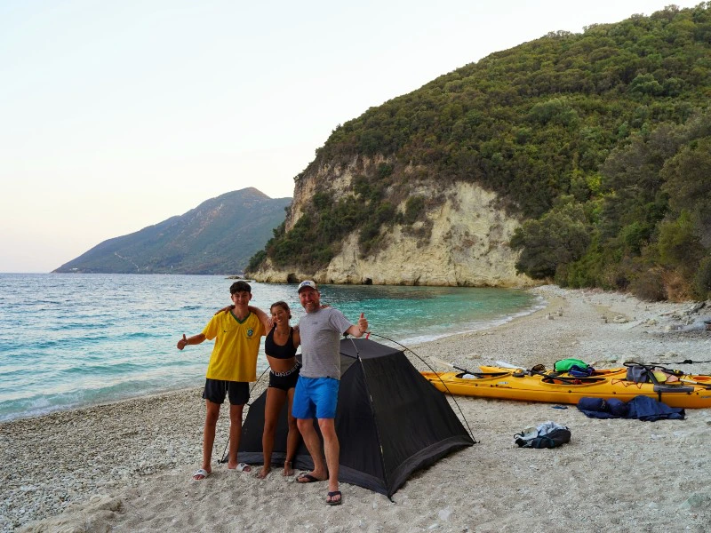 Het avontuur kan beginnen! De komende twee dagen ga je in een kajak eilandhoppen voor de kust van Lefkas. Om 10:00 spreek je met de andere expeditieleden af in Nydri waar je je gids Alex ontmoet. Hij en zijn collega’s komen uit de regio en kennen het gebied goed. Zij laten jou de mooiste plekken zien waar toeristen normaal niet komen. Na een uitgebreide uitleg over de uitrusting en de veiligheidsmaatregelen glijd je eind van de ochtend het water in en ga je samen met de andere expeditieleden op pad. Je peddelt op open zee, maar door een beschutte omgeving; zo heb je weinig last van wind of grote golven. Je gaat snorkelen in het helder blauwe water, picknicken op een onbewoond eiland en verkent adembenemende grotten.