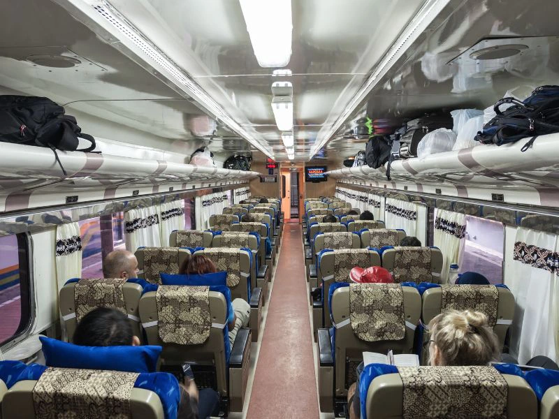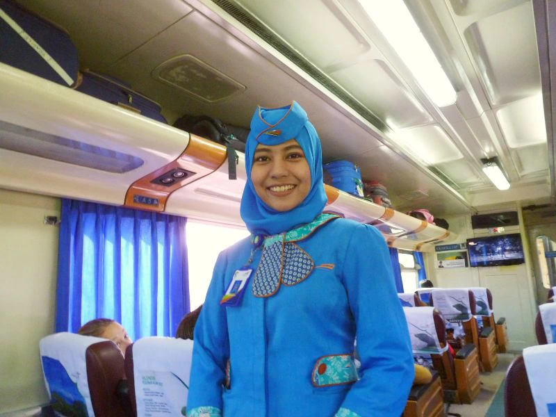 Na een vroeg ontbijt brengt de chauffeur je naar het treinstation van Jakarta. De treintickets zijn al geregeld, je moet alleen nog even de instapkaart laten printen bij de ticketmachines op het station. Op het kaartje staat waar je mag zitten: eerste klas in de airco, samen met lokale zakenmannen en families. Vanuit je comfortabele stoel zie je het landschap de komende 7 uur passeren: de buitenwijken van Jakarta, glooiende theeheuvels en groene rijstterrassen. Koop een lekkere snack en koffie bij het treinpersoneel, lees een boek of maak een praatje met een van de locals. Ze zijn vaak heel nieuwsgierig waar je vandaan komt en heen gaat.