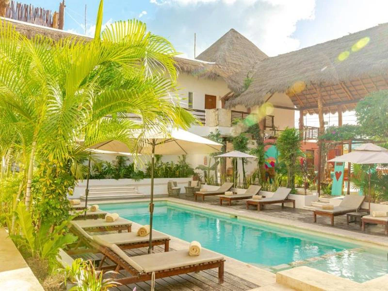 Doe deze morgen lekker rustig aan. Lees een boek aan de rand van het zwembad of luister naar de vogelgeluiden om je heen voordat je weer verder rijdt naar de Caribische zee. In de loop van de middag kom je aan in Tulum. Tijdens deze reis hebben we voor een verblijf in het dorp van Tulum gekozen, op 25 minuten fietsen van het strand. Mocht je dat willen dan kun je ook voor een verblijf aan het strand kiezen, onder aan deze pagina vind je daar meer informatie over terug. Zo, en nu even ontspannen.