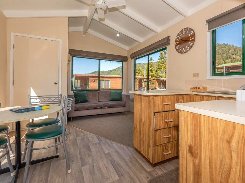 Langzaam maar zeker verandert het landschap naarmate je meer naar het zuiden reis. Goudgele zandstranden maken plaats voor een groen en heuvelachtig binnenland. De wat langere route buigt af naar de kust; zo rijd je via de pancake rocks bij Punakaiki. Rotsen die er uitzien als een stapel pannenkoeken; het gesteente is afgesleten door de wind en de ruige zee. Een prima plek om je auto te parkeren, wat te lunchen en naar de rotsen te wandelen. Daarna rijd je nog een klein uur via de kust naar Hokitika. Je overnacht in een fijne en ruime cabin, op loopafstand van het strand. Nog zin in een mooie hike? Ga dan naar de Hokitika-kloof: schitterend turquoise water is omzoomd met steilwitte kalkstenen kliffen en weelderig groen regenwoud. Bovendien easy peasy, dus goed te doen. Wandel aan het einde van de middag naar het sunset point; bij helder weer zie je de zon mooi in de zee zakken.