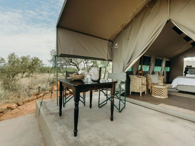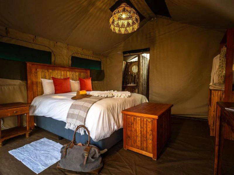 Wil je vandaag met een ervaren ranger op pad, dan kun je bij de receptie van het kamp vragen naar de mogelijkheden. Vaak zijn er op verschillende tijdstippen van de dag game-activiteiten geregeld. Behalve dat je met een ranger vaak net wat meer ziet, kan hij of zij je van alles vertellen over de sporen die je onderweg tegenkomt, de vegetatie en bijvoorbeeld de diverse ecosystemen. Verstandig is om je activiteit ’s ochtends vroeg te plannen, want vandaag rijd je ook verder naar de volgende overnachtingsplek. De afstand die je vandaag aflegt, is ongeveer 150 kilometer, maar zoals eerder beschreven, mag je hier niet je gaspedaal te veel indrukken, waardoor je er wel even mee bezig bent. Vanavond klap je wederom je tent uit en ga je letterlijk onder zeil met de dierengeluiden op de achtergrond.