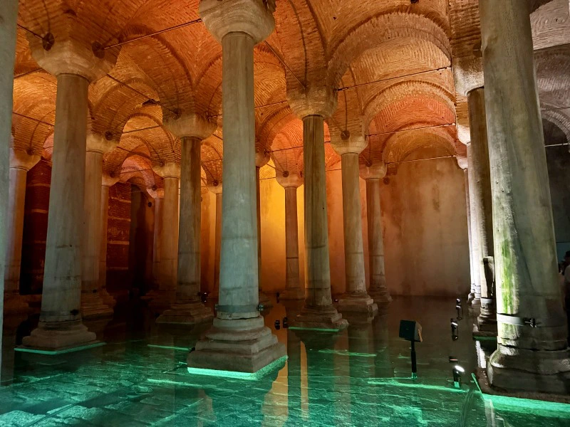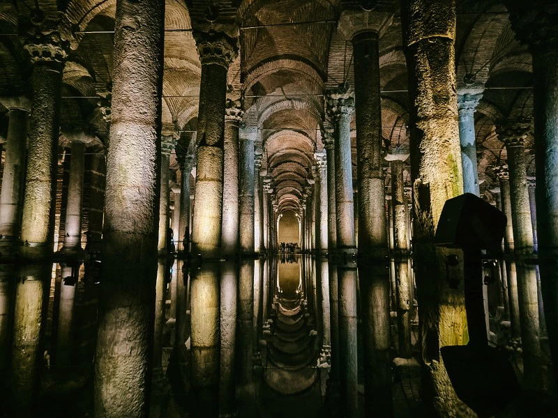 Verstopt onder het bruisende Istanbul ligt de Basilica Cisterne, een indrukwekkend ondergronds reservoir uit de 6e eeuw. Deze Byzantijnse waterkelder, ooit gebouwd om het paleis van Constantinopel van water te voorzien, ademt een mysterieuze en serene sfeer. Terwijl je over de wandelbruggen tussen de 336 zuilen loopt, wordt de grootsheid van het bouwwerk duidelijk: sommige zuilen zijn versierd met bijzondere kapitelen, andere dragen subtiele verwijzingen naar mythologische figuren. Het zachte kabbelen van het water en de sfeervolle verlichting maken het bezoek bijna betoverend.