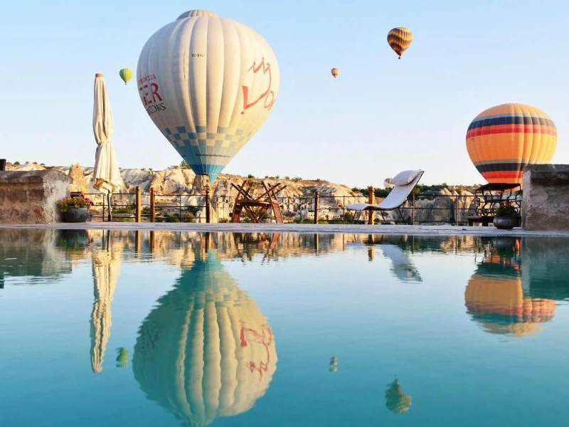 Je verblijf in Cappadocië zit er alweer op. Na het uitchecken van je grothotel kun je nog één keer genieten van het uitzicht over de valleien en de rotsformaties die deze streek zo bijzonder maken. Vanaf het terras zie je misschien nog een paar luchtballonnen in de verte verdwijnen, terwijl het dorp langzaam ontwaakt.
