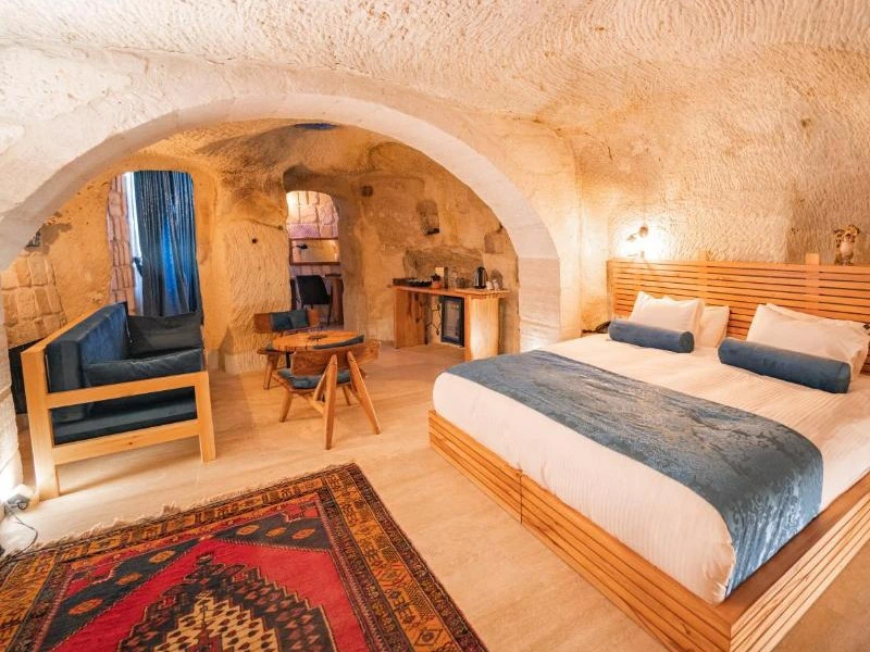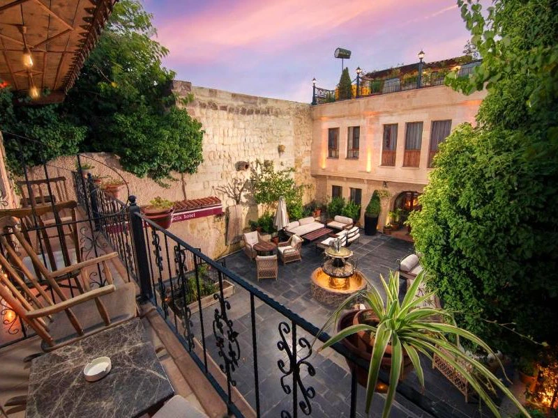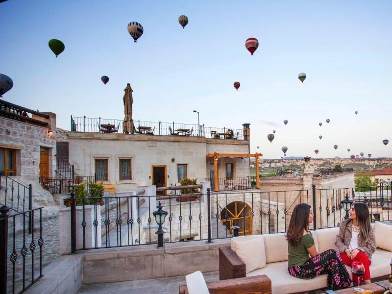 Slaap in een stijlvol hotel in het hart van Göreme, het toeristische middelpunt van Cappadocië. Zodra je de deur uitstapt, word je omringd door sfeervolle straatjes, lokale winkeltjes en gezellige restaurantjes. En terwijl de zon opkomt, zweven tientallen luchtballonnen boven je hoofd, een magisch uitzicht dat je direct vanuit je hotel kunt bewonderen. Deze optie is perfect voor wie graag midden in de levendigheid wil zitten, met alle hoogtepunten van Cappadocië binnen handbereik.
