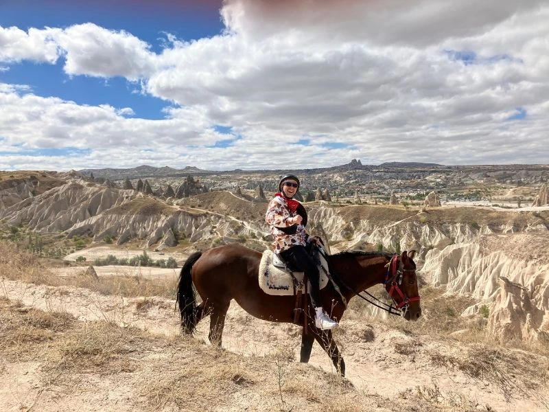 Tijdens een paardrijtocht verken je Cappadocië op een rustige en bijzondere manier. Samen met een lokale gids rijd je door het glooiende landschap, langs rotsformaties, wijngaarden en grotwoningen die in het zachte tufsteen zijn uitgehouwen. De tocht voert door stille paden en open vlaktes, met steeds weer nieuwe uitzichten over dit unieke gebied. Of je nu ervaring hebt of niet, de paarden zijn gewend aan het terrein en de rit is voor iedereen goed te doen.