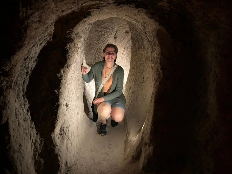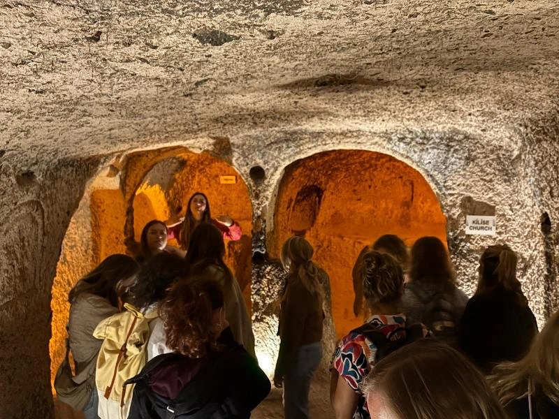 Maak kennis met de mysterieuze ondergrondse steden van Cappadocië, waar mensen duizenden jaren geleden schuilden tegen vijanden en het extreme klimaat. Samen met een gids daal je af in smalle gangen en kamers die diep onder de grond zijn uitgehouwen in het zachte tufsteen. Je loopt langs oude woonruimtes, opslagplaatsen en ventilatieschachten, en hoort verhalen over hoe hele gemeenschappen hier dagenlang konden overleven. De stilte en koelte onder de grond zorgen voor een bijzondere sfeer.
