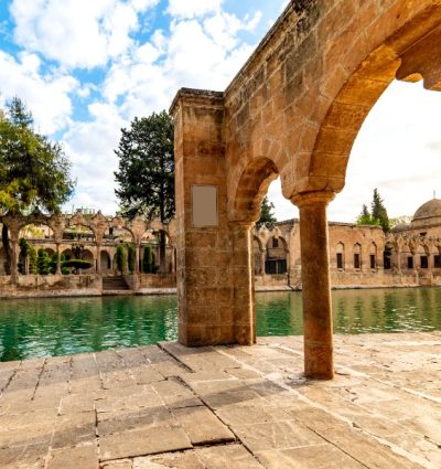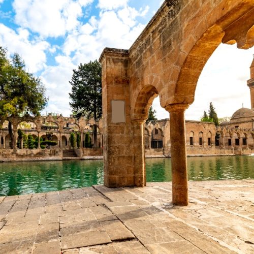 Welkom in Şanliurfa, een stad waar mythen, religie en levendige tradities samenkomen. Terwijl je door het oude centrum loopt, zie je ambachtslieden aan het werk in kleine ateliers en ruik je de geur van versgebakken platbrood dat uit de ovens komt. De markten bruisen van kleur en geluid, een plek waar handel, muziek en dagelijks leven moeiteloos in elkaar overvloeien. Je verblijft in een sfeervol, traditioneel hotel midden in de stad, op loopafstand van de belangrijkste bezienswaardigheden. Zodra de avond valt en de temperatuur daalt, vult de stad zich met leven: locals flaneren langs het heilige vismeer, kinderen lachen en spelen, en vanuit de steegjes stijgt de geur van houtskool en kruidige kebab op.