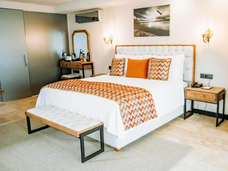 De komende nachten slaap je in een rustig hoekje van Urla, op loopafstand van het glinsterende Egeïsche strand en het kleine dorpje aan zee waar vissersbootjes zachtjes dobberen. ’s Ochtends sta je op en hoor je de zee kabbelen in de verte, terwijl je je ontbijt hebt tussen olijfbomen en uitzicht op tuinen vol groen. Overdag wandel je het dorp in: kleine winkeltjes, lokale cafés en een ontspannen sfeer die perfect past bij de kust. Wanneer je zin hebt in strand, loop je naar de kust voor een middag zwemmen onder de zon. ‘s Avonds kun je aanschuiven bij een restaurant aan zee met verse vis en lokale wijnen.